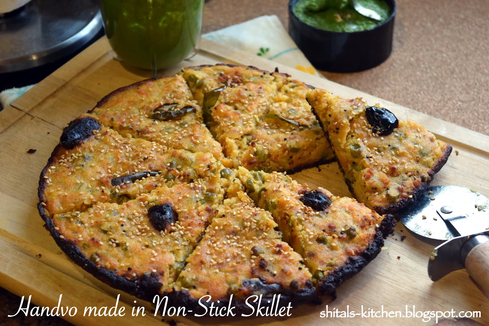 Also Handvo can be cooked in different ways: on stove top as well as baked in an oven. Bellow I have various ideas and options you can use to prepared handvo.