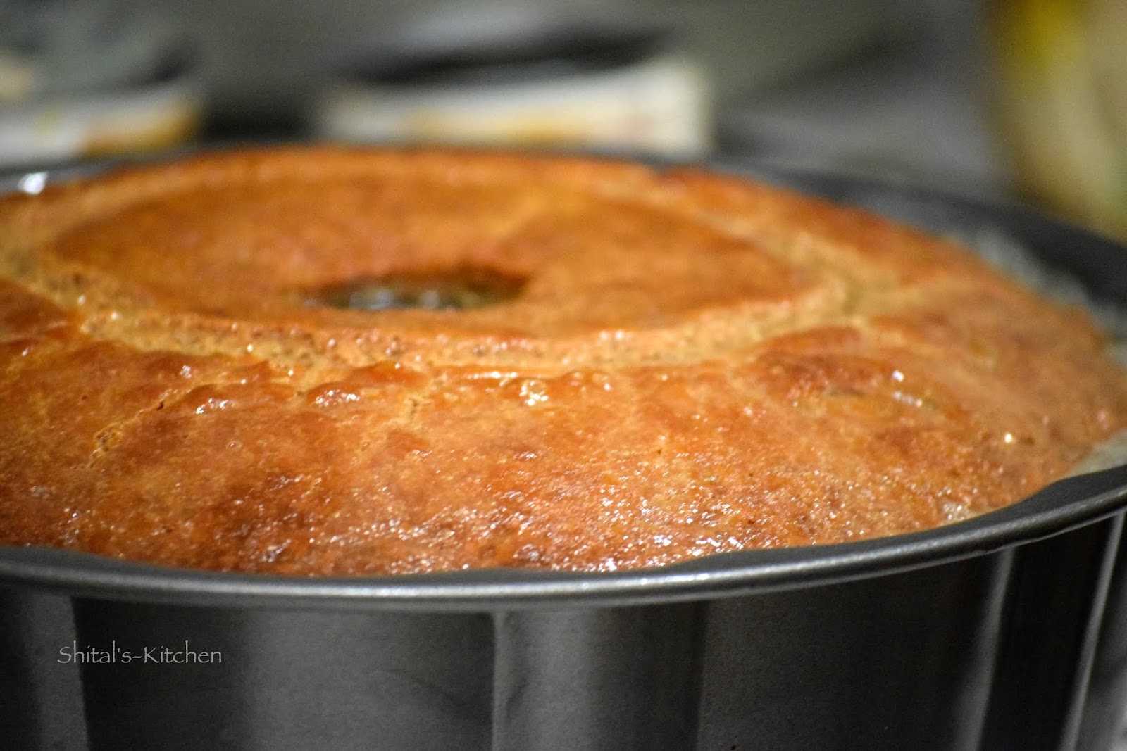 During winter break we had my family from San Diego visiting us, and spent amazing time with my Nephew and Niece. I was experimenting with eggless fruit and nut cake with easy and simple ingredients I had at home. I was gifted a cute mule mug and sparkling ginger beer/ginger ale from one of my students, so I incorporated that in the experimenting recipe. To my amusement the cake turned out amazingly delicious. It had the perfect sweetness, perfectly soft, delicious flavor for ginger beer/ginger ale and spices, and perfect texture from nuts. On taking the first bite my nephew said, "Shital aunty you should put this recipe on your blog." That was such a happy moment for me...my experiment was successful! :) I had posted a pictorial video on my Facebook page and my friends wanted me to post a detailled recipe of my eggless experiment. So finally I was able to bake the cake and measure the ingredients I added and develop a recipe. :) Some of my friends got to taste it and I am so glad they loved it. I can't wait to bake it again.