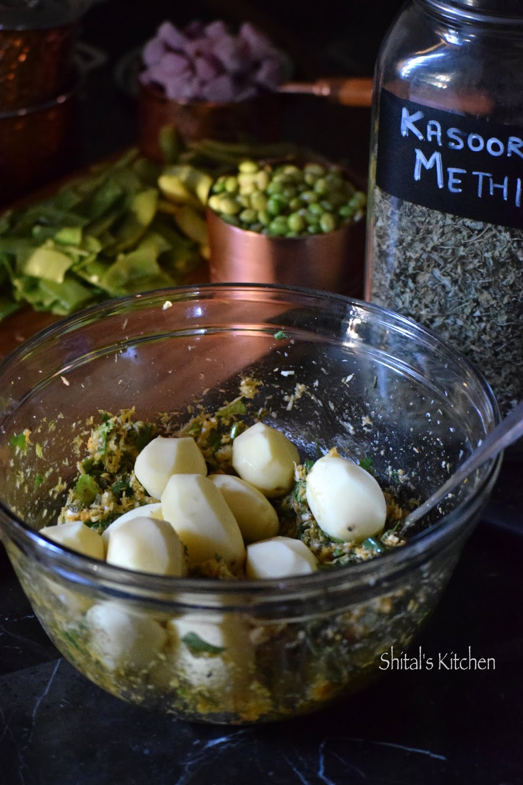 Time for almost last undhiyu of the season. Although with frozen veggies available in the US, we can make undhiyu year round, but the fun of enjoying it is in winter.
