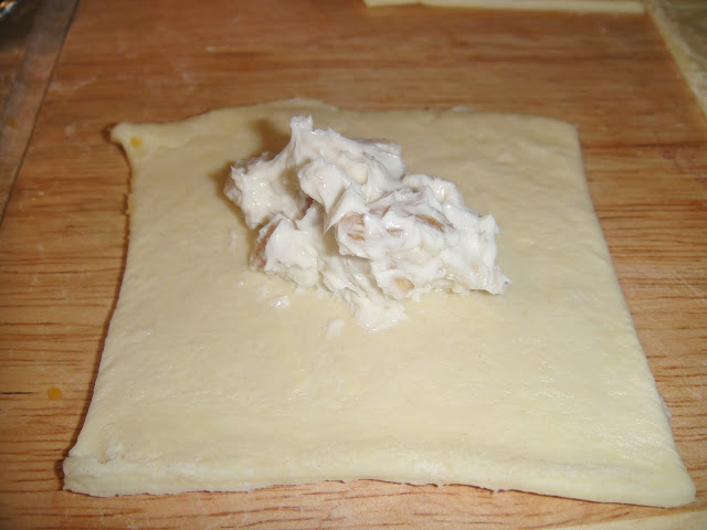 Fill the cream cheese filling in the dough and bake them to make cheesy fruity puffs.