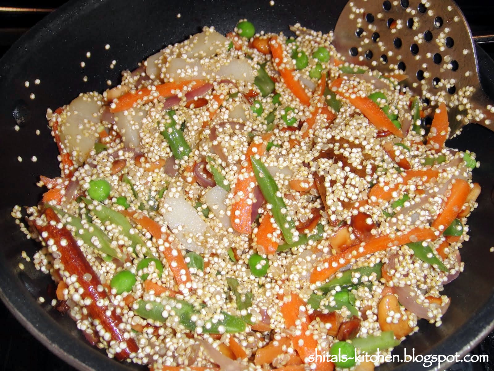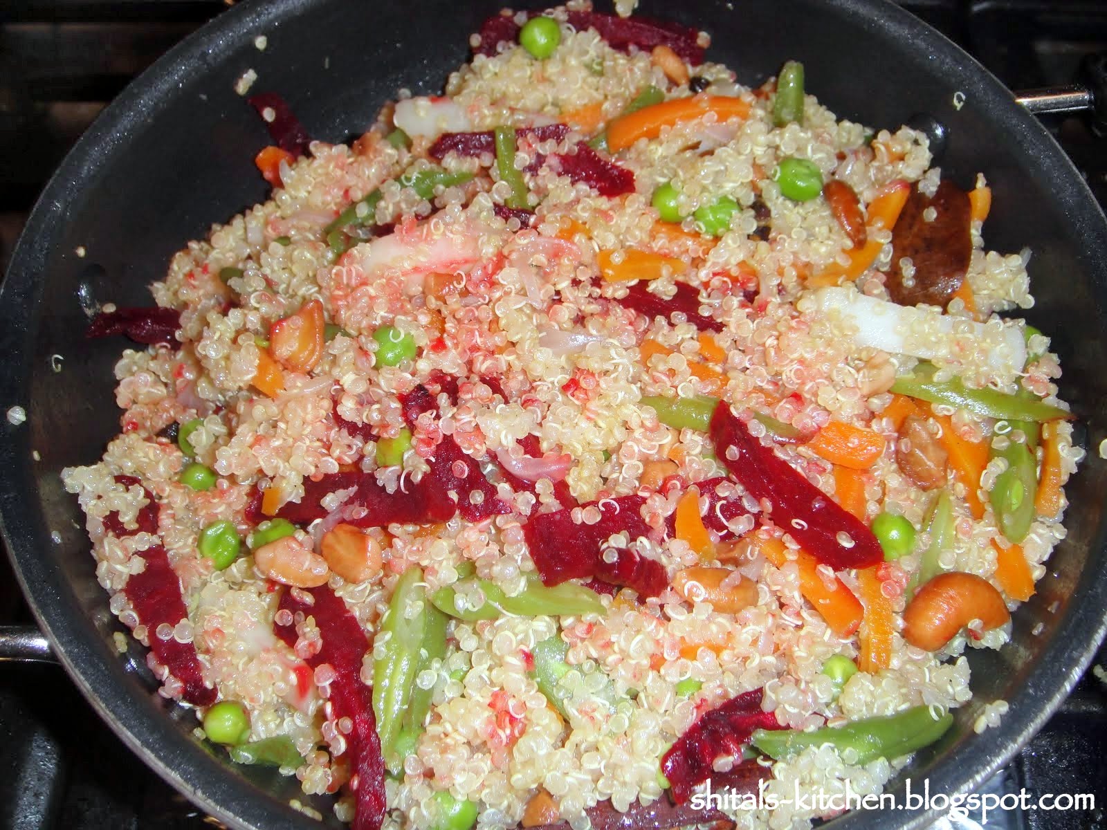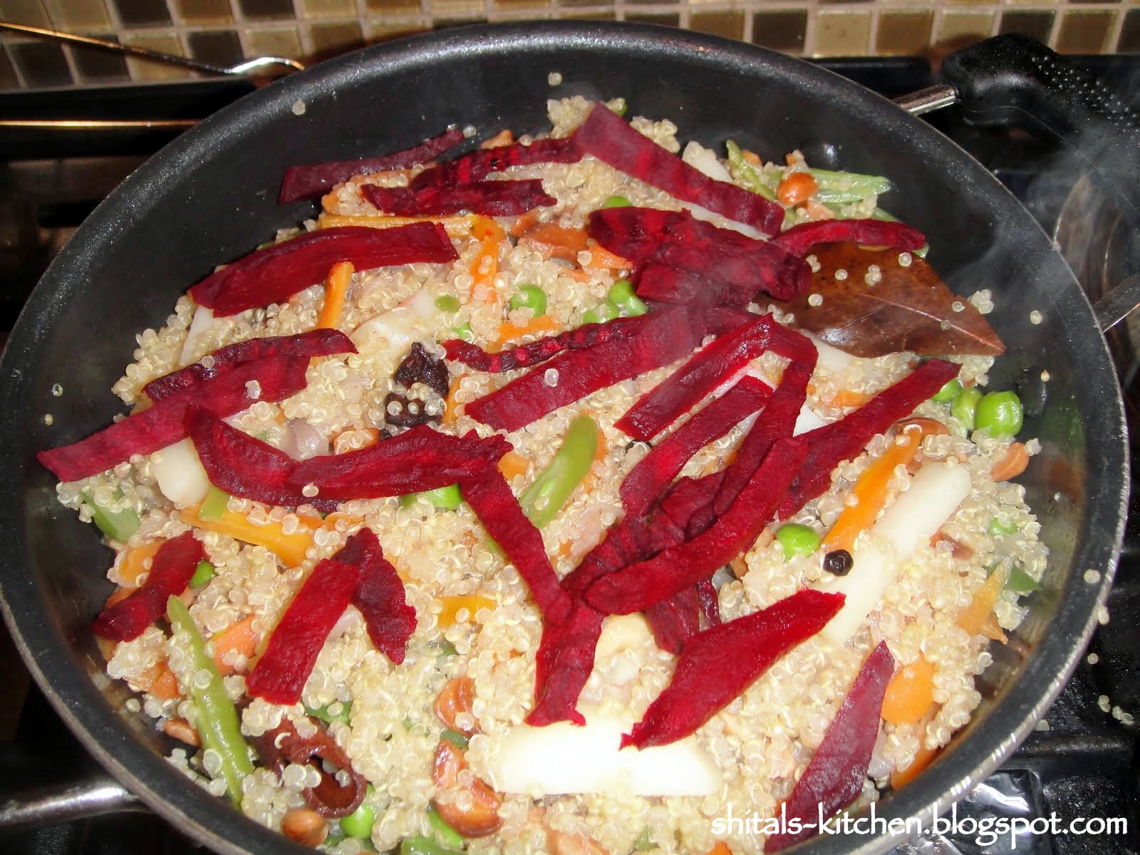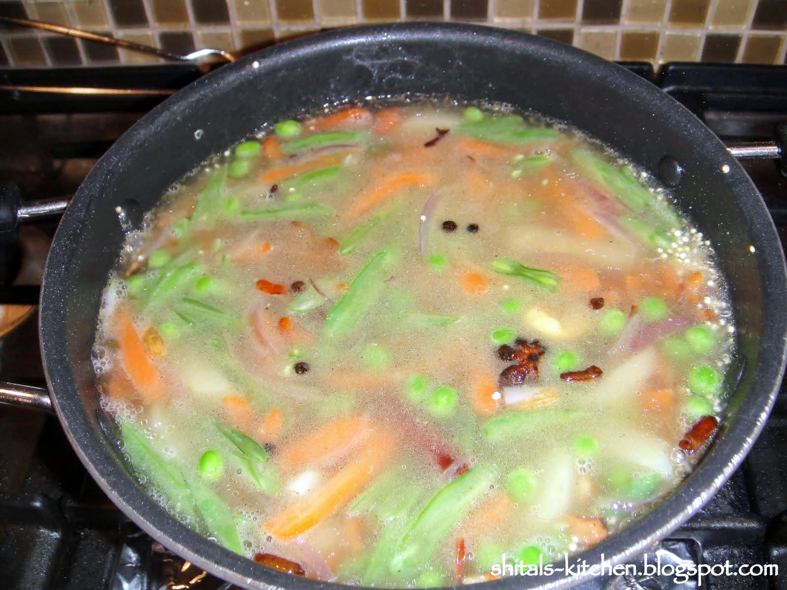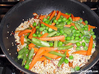 Add 3 cups of cooked basmati rice to cooked veggies. |