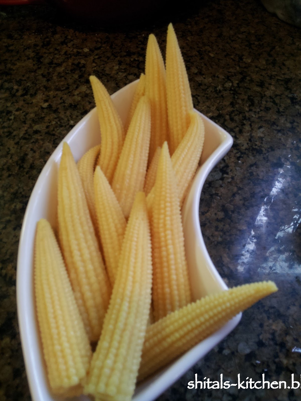 Wrap some foil on the baby corn (bone) :) Serve with chilly sauce, ketchup or schezwan sauce.