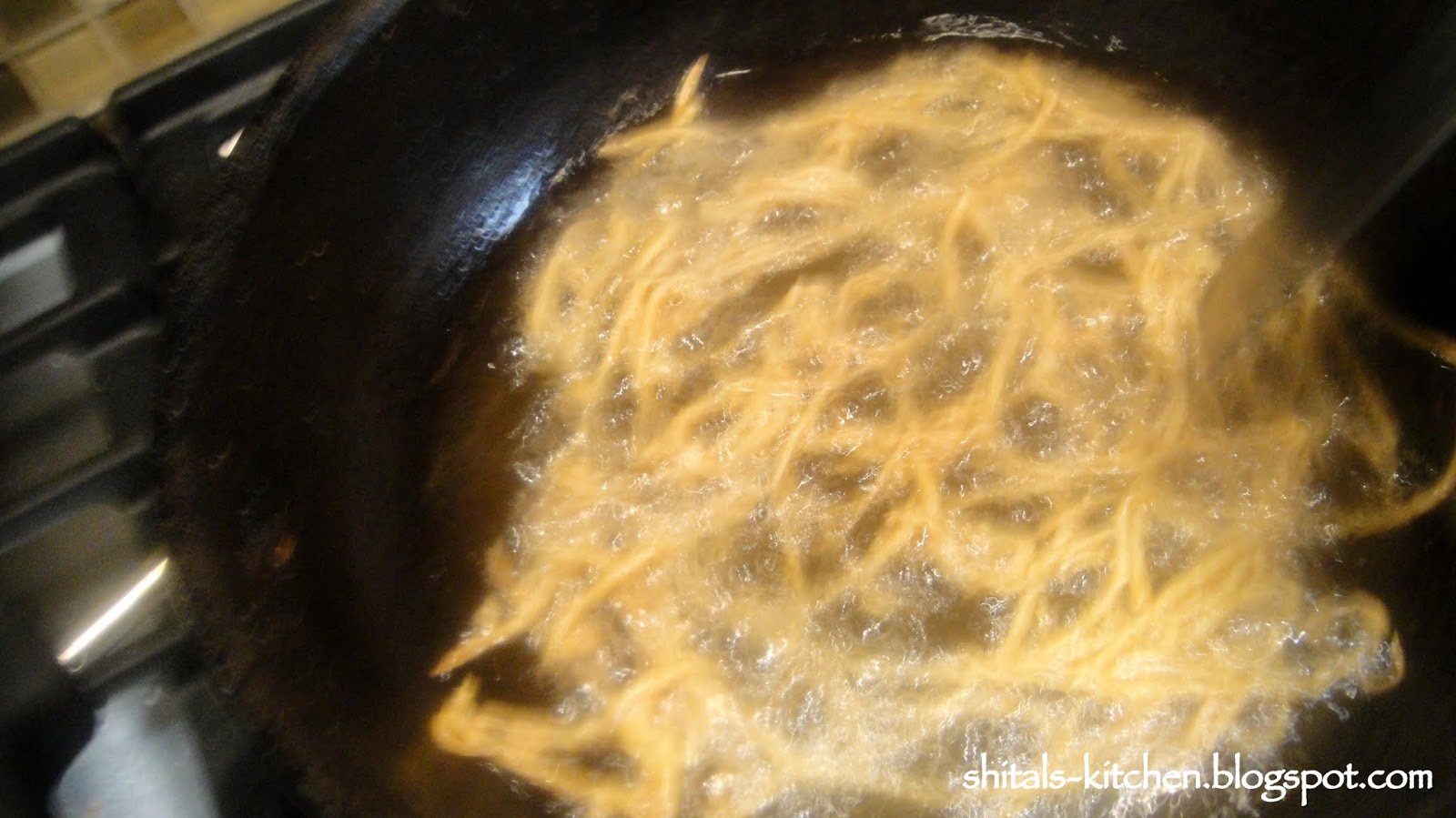Deep fry in hot oil. It will take just 15-20 seconds to fry crisp.