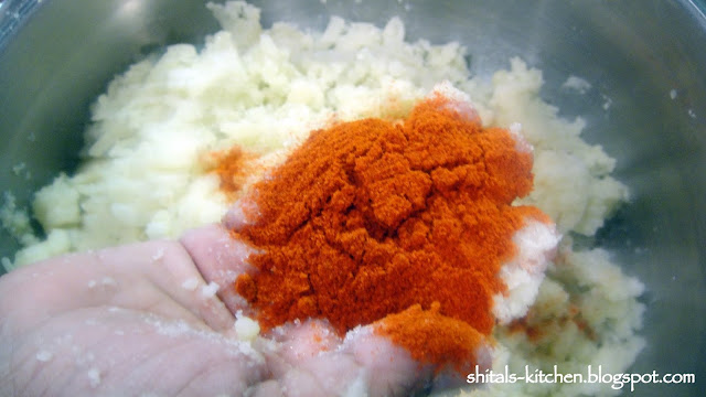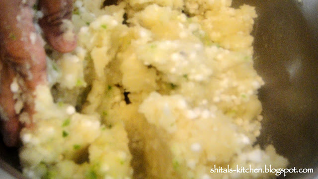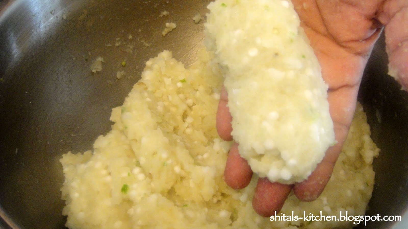 - Add ginger and green chili paste, salt and soaked sabudana.