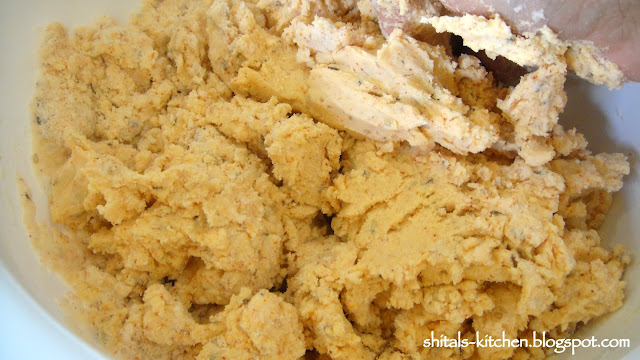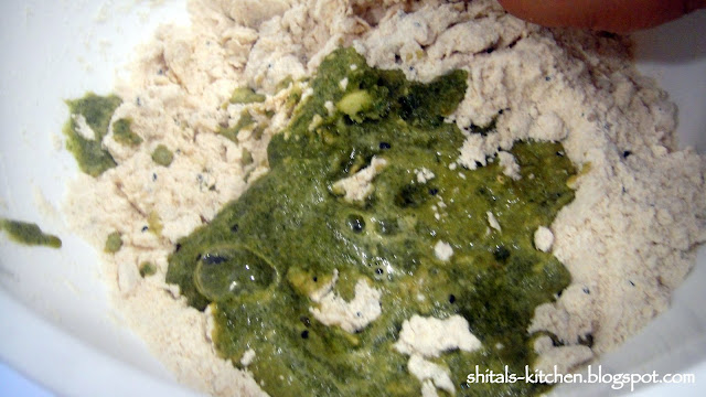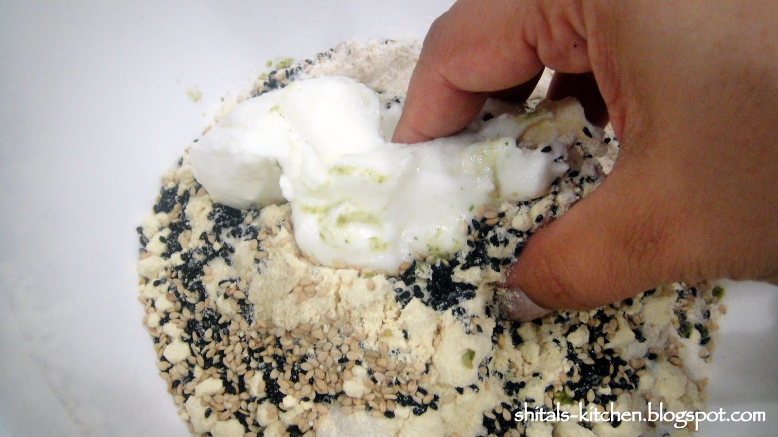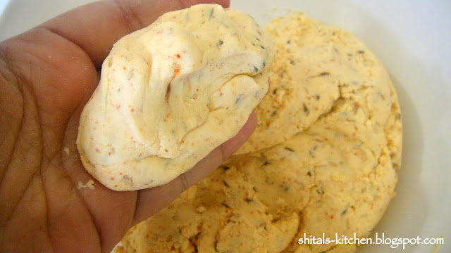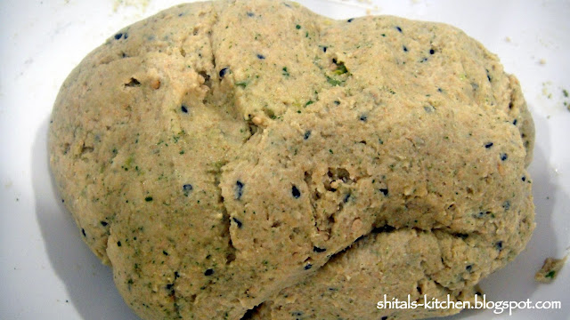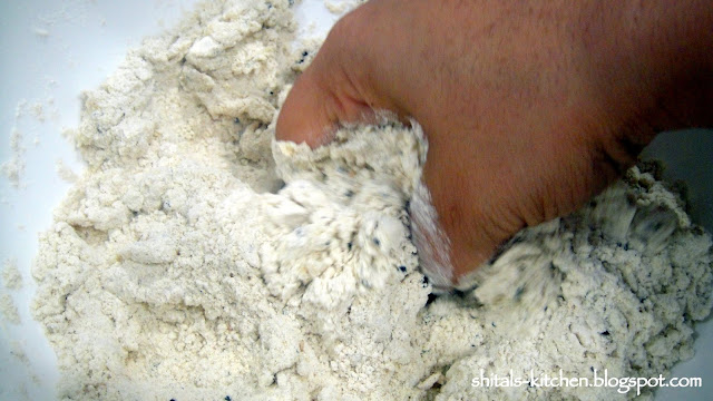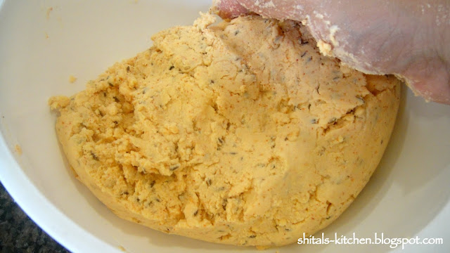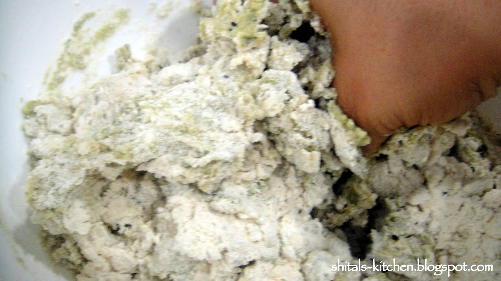 Mix all the ingredients well with your palm. Make a soft dough by gradually adding water.