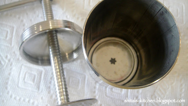 Here is my chakli press: a star shaped opening in a press to produce a great crisp texture.