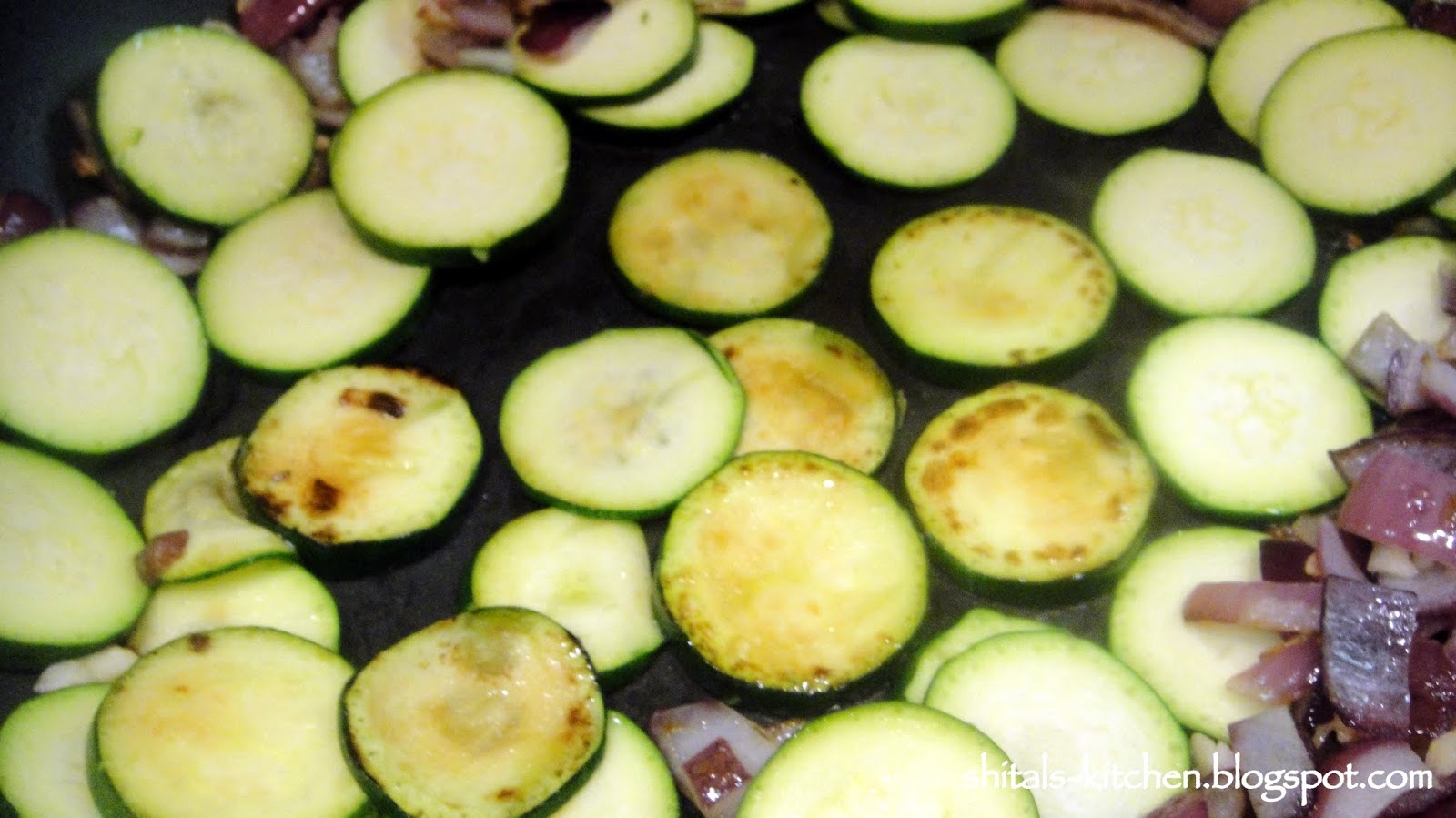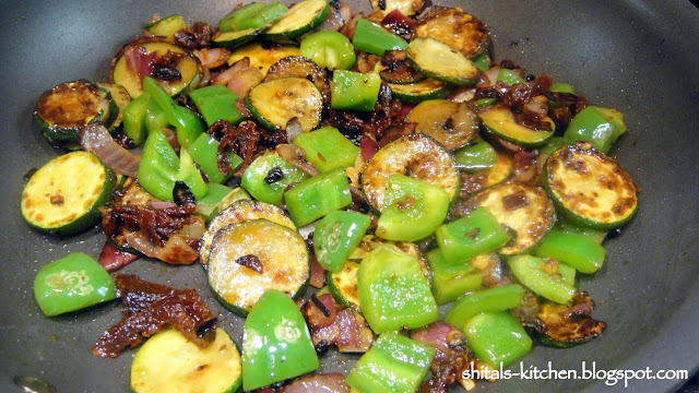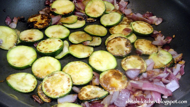 Zucchini is a type of squash just like bottle gourd or lauki or doodhi that we use in Indian cooking. This means that it is low on calories, high in water content and rich source of vitamin A :) So, while I cooked my favorite pasta, I also added some roasted zucchini to it. This was the first time Snehanshu was to try this delicious veggie, so roasting and caramelizing it would sure be deliciously inviting :)