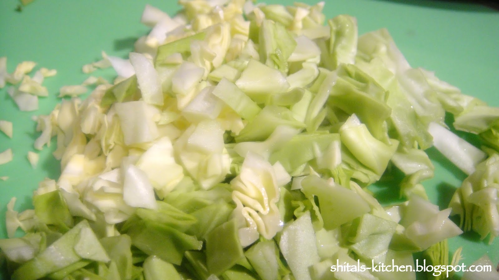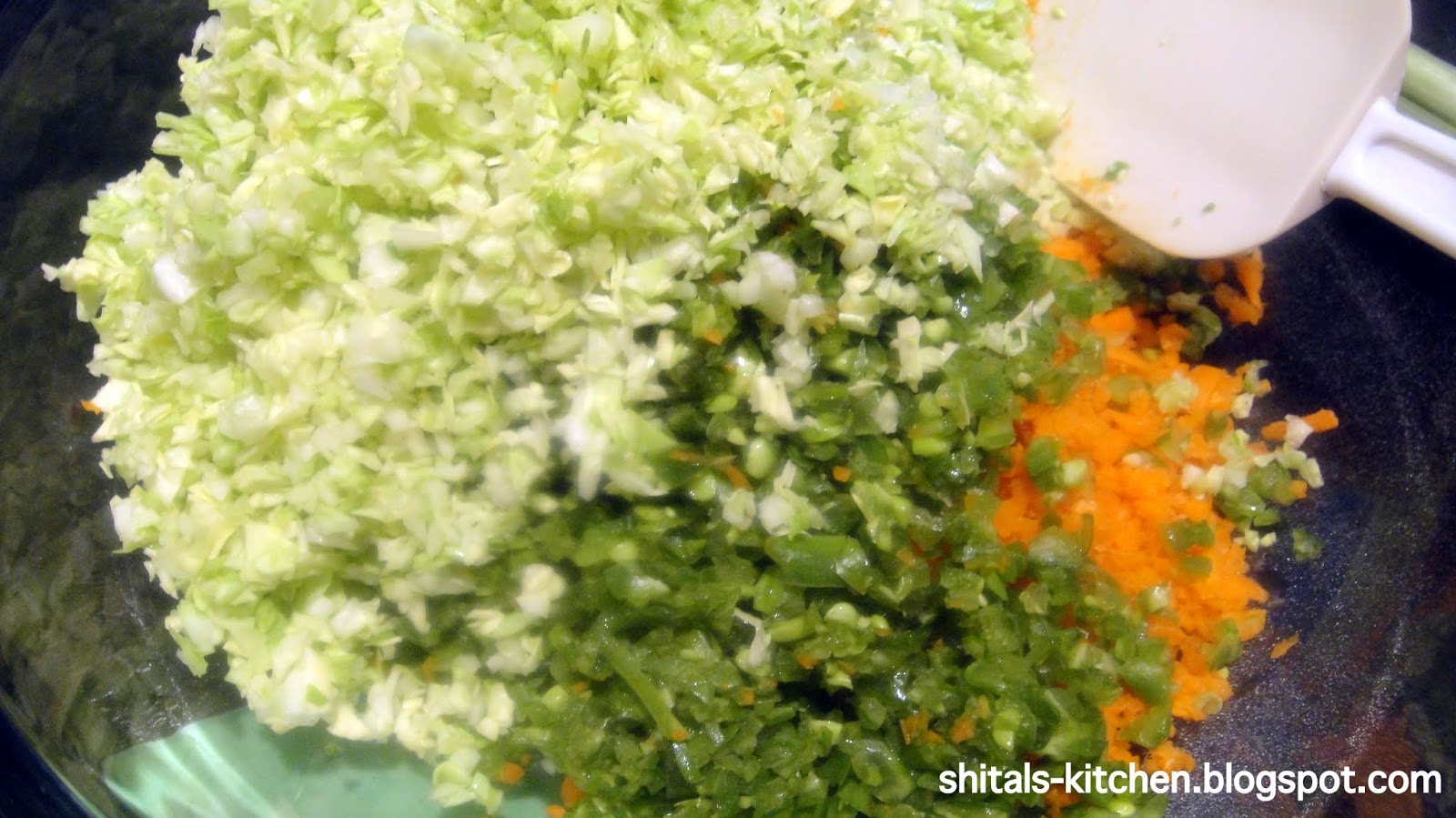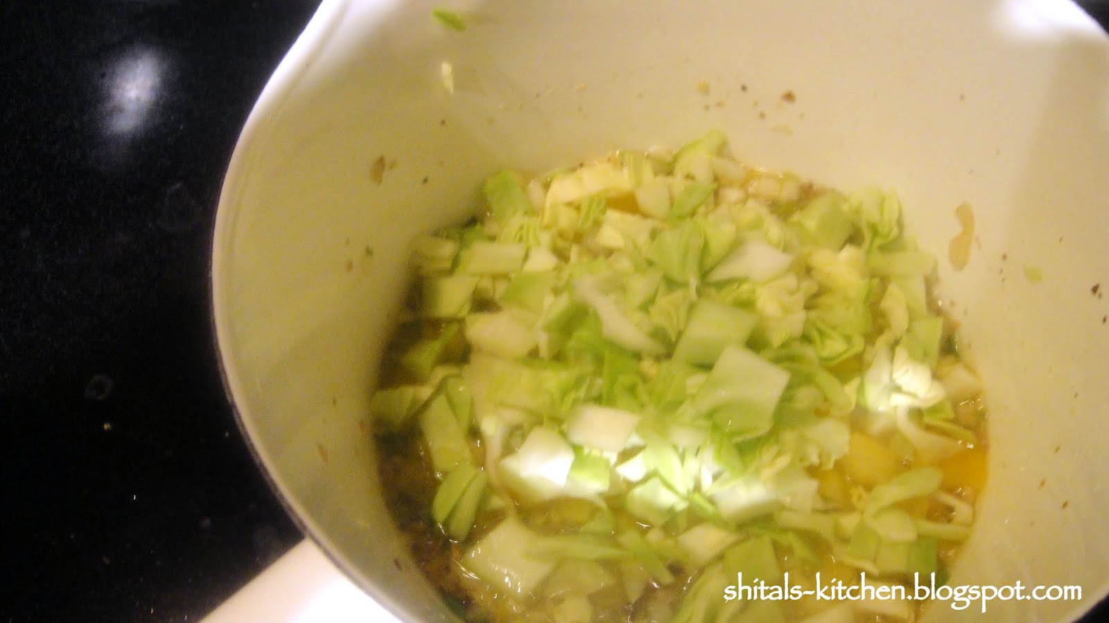 Add 1/4 cup of roughly chopped cabbage and bell pepper.