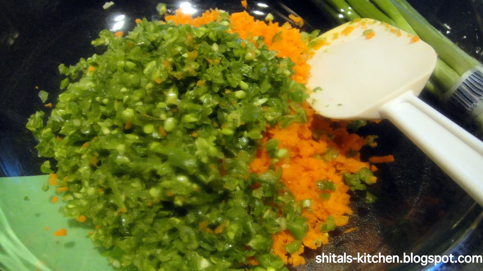 Add minced veggies in a large bowl: