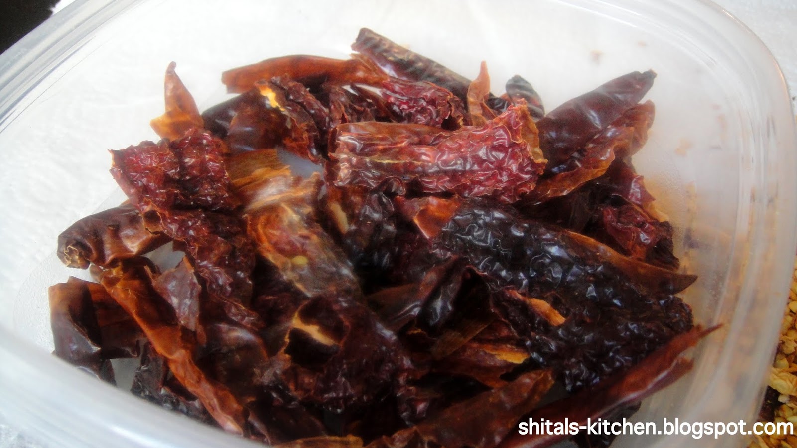De-vein and de-seed dry red chillies. Heat 2 cups of oil to get it slightly warm. Turn off the heat and add in the chillies. Set it aside for 3-4 hours. Use this flavorful, chilli infused oil for cooking or as dipping sauce.