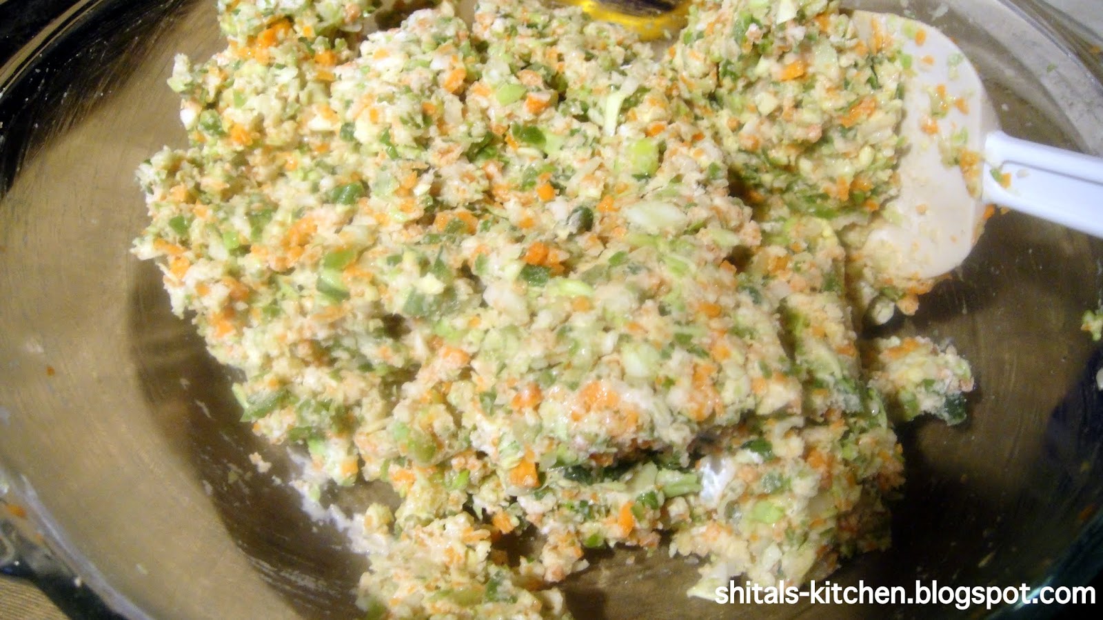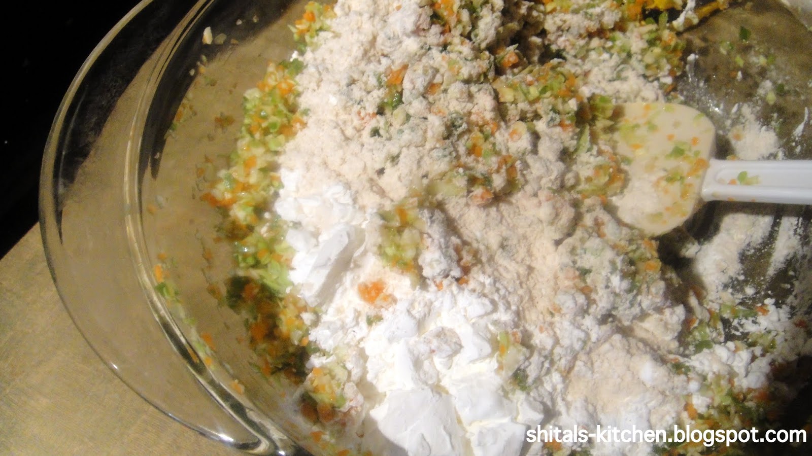 Mix well to add a soft dough. You may want to adjust the amount of flour depending on the amount of moisture in your veggies. Do not add in extra moisture/water.