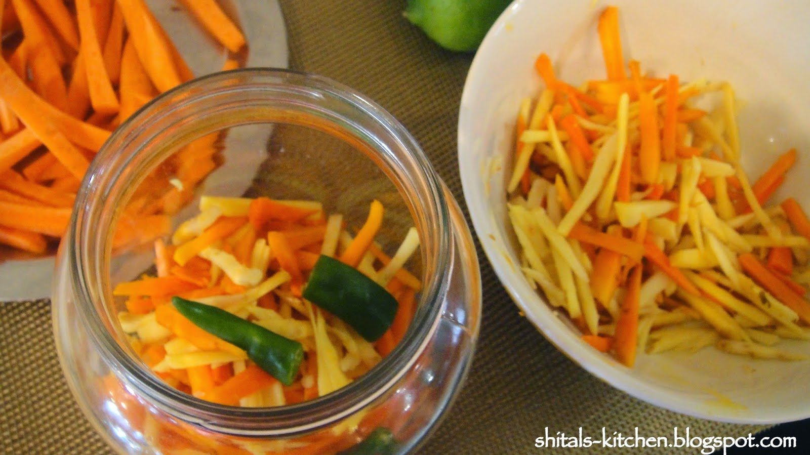 I also like adding carrots to this pickle. That is how my mom makes it :)