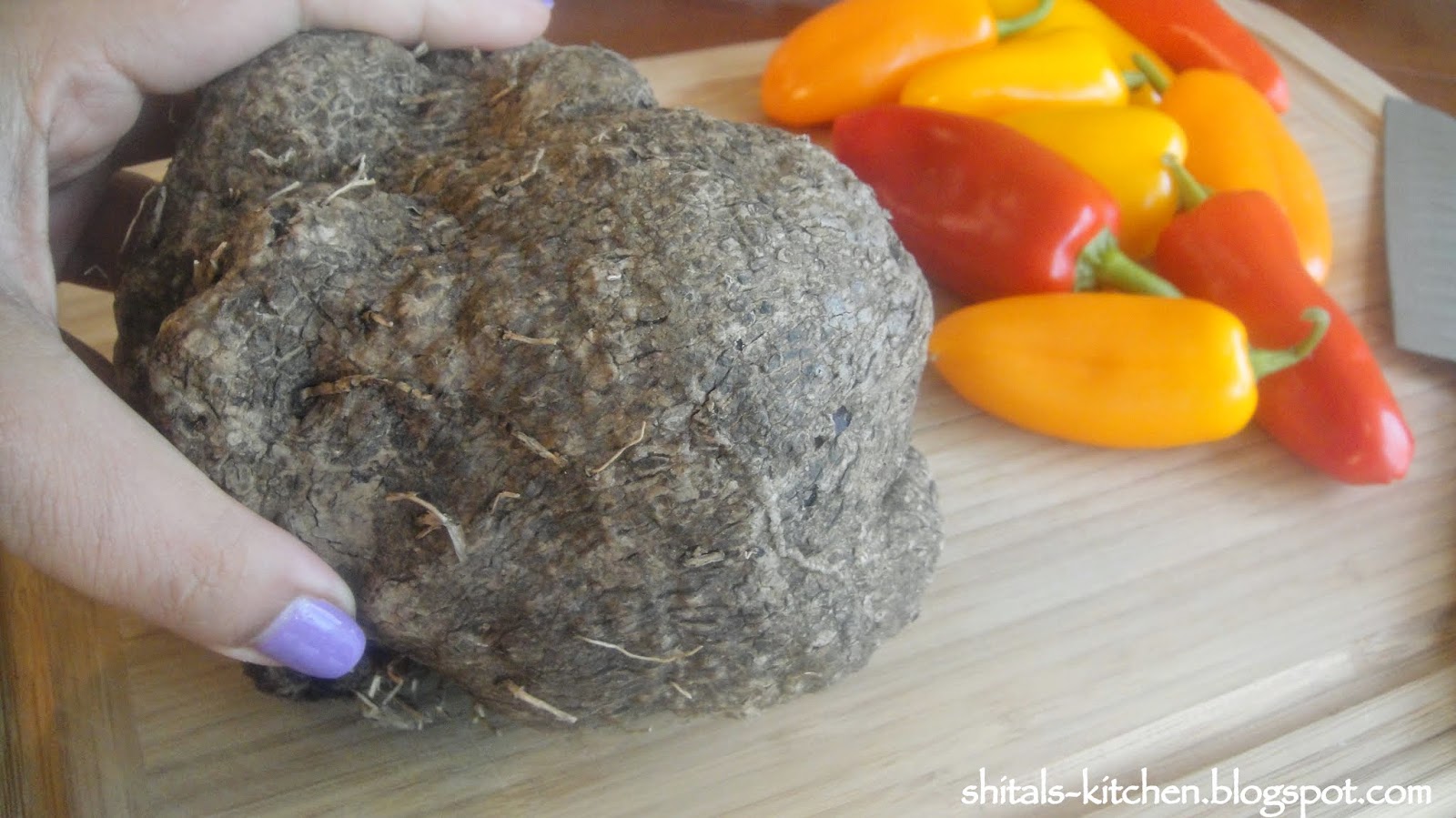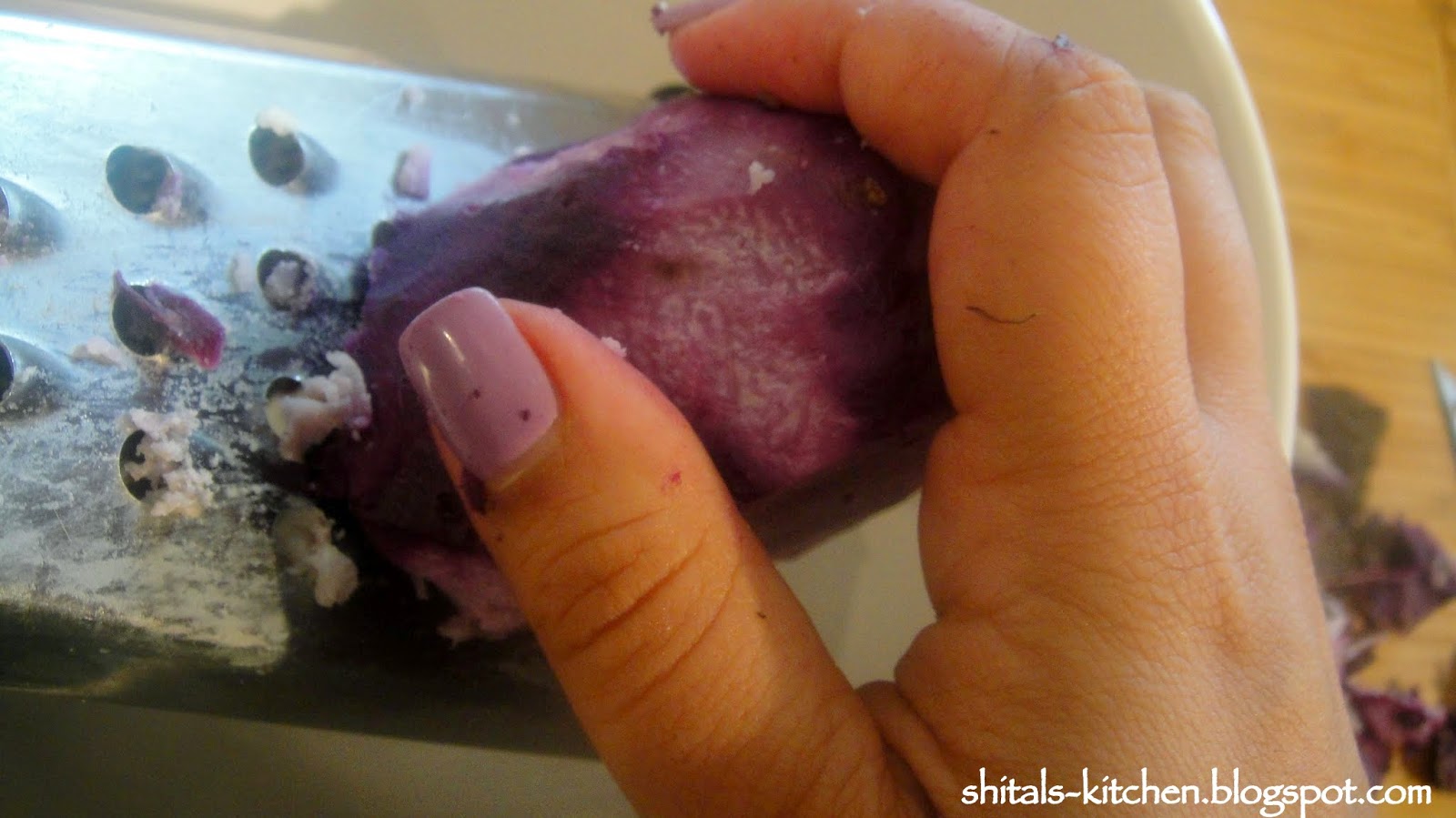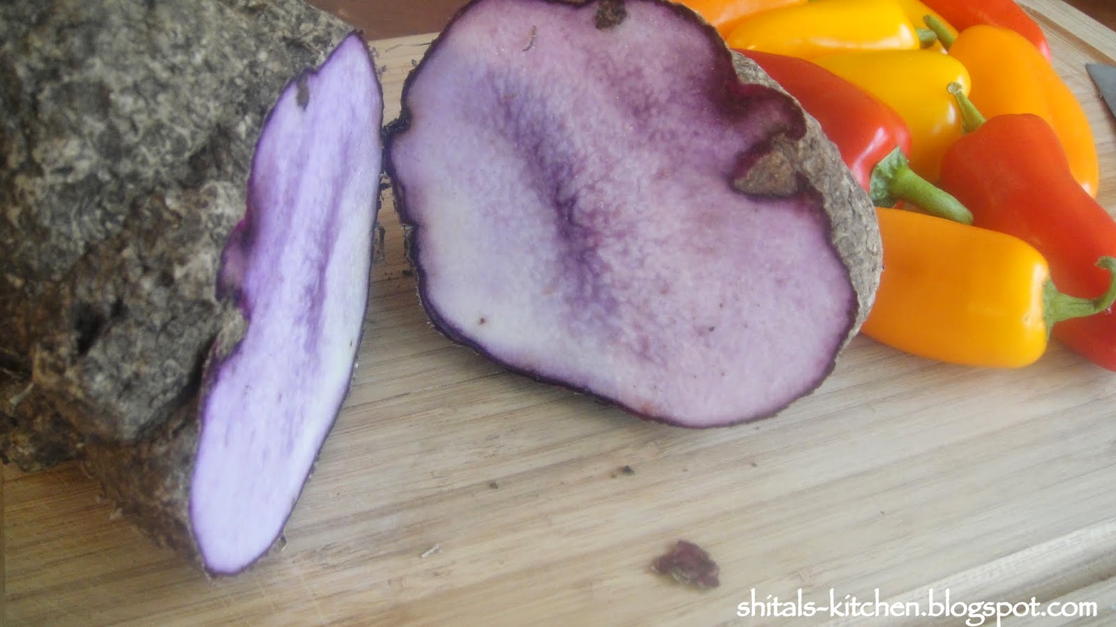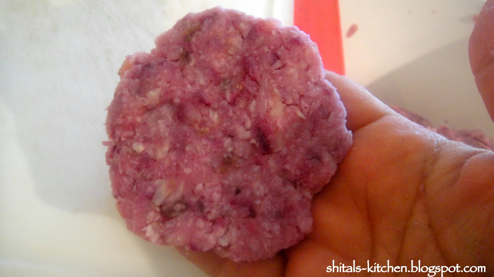 Purple Yam or Kandh or as know by many as Ratula is a Gujarati root. This root veggie is added to the most famous Gujarati mixed veggie Undhiyu. It is very rarely available fresh, so I had picked it up two days ago to make a delicious veggie delight. Since this was easily accessible in my fridge, I thought of making some stuffed patties. Do not confuse this with purple potato! Purple Potato is very different from Purple Yam. Later is a firm root, great to be eaten boiled or even fried with a hint of salt, pepper and lime. For all those who have been to Nathdwara/Shrinathji, I am sure you are getting nostalgic with the delicious, crisp, fried Kandh available there.