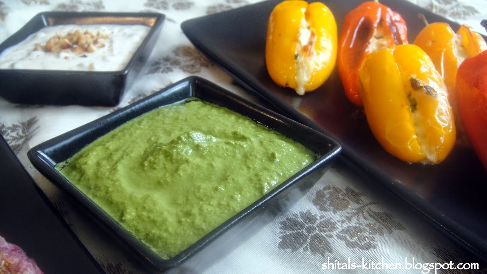 Serve with green cilantro chutney and peanut chutney dip.