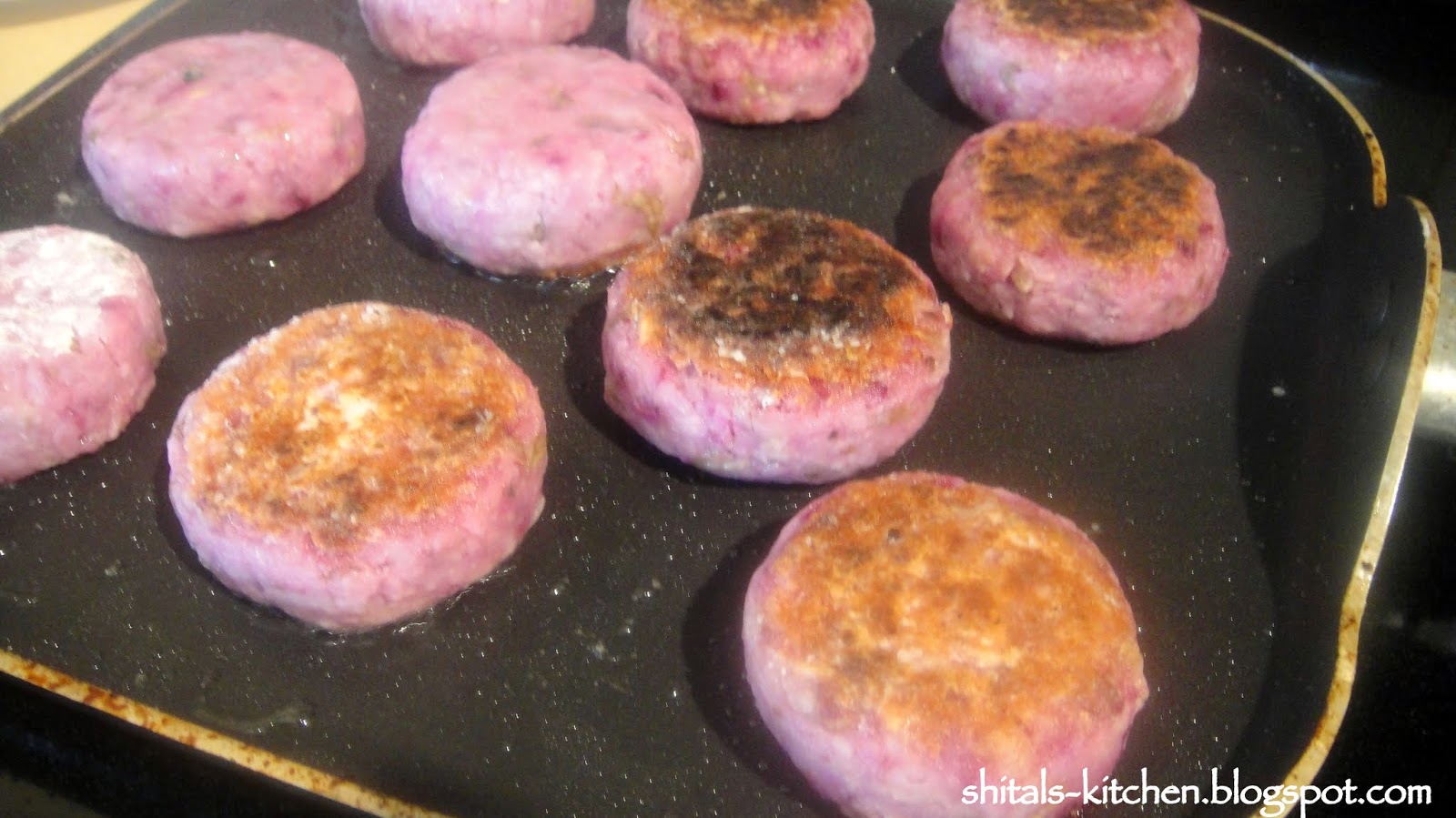 Lightly coat and deep fry the patties in hot oil. You could also shallow fry them or pan roast with very little oil.