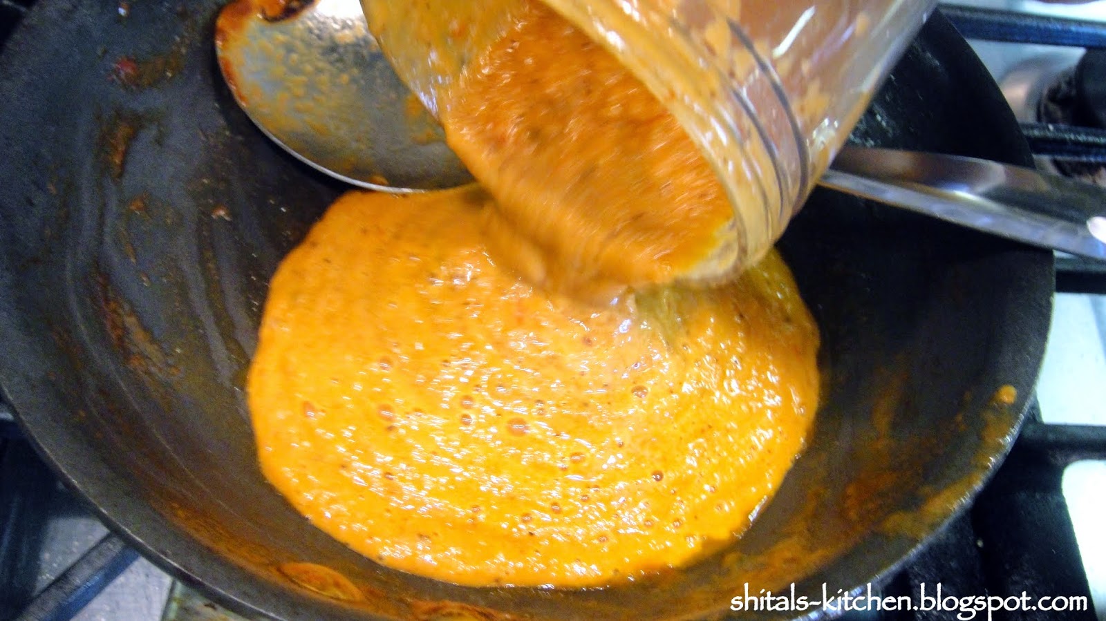 Let the cooked tomatoes cool. Grind to form a smooth paste.