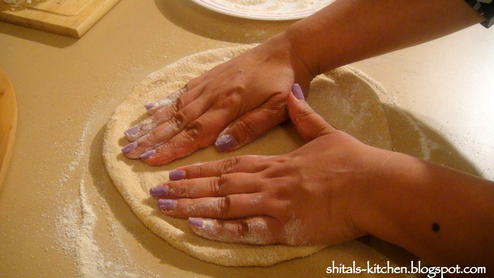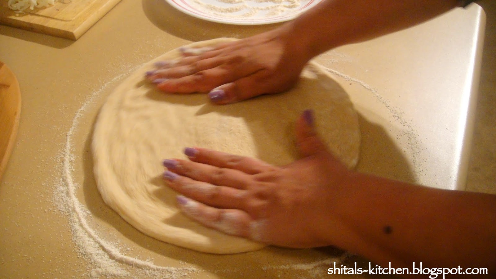 press the dough, and spread it to form a 9-10 inch circle. You could