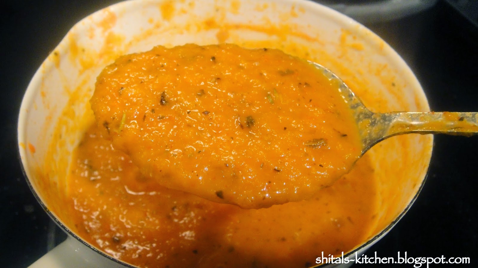 Grind to form a puree. Transfer puree into sauce pan. Add salt, 1 tsp sugar, red chilli powder, pepper, Italian spice mix or Dry herbs of your choice. You could also use fresh herbs of your choice.