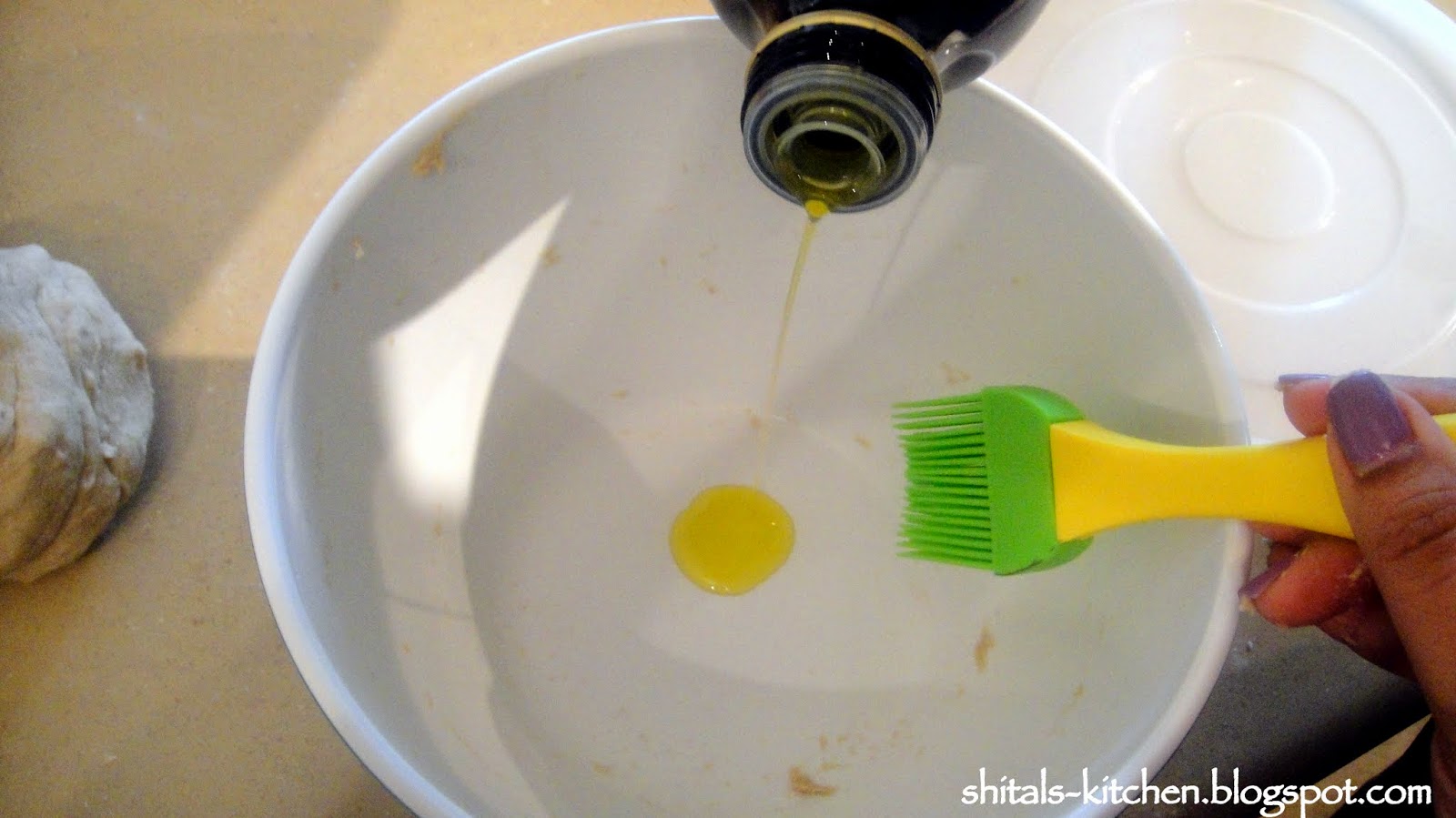 Apply some oil on the dough too, to prevent it from drying.