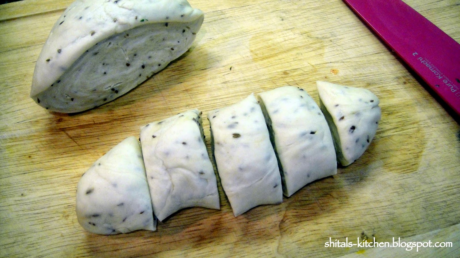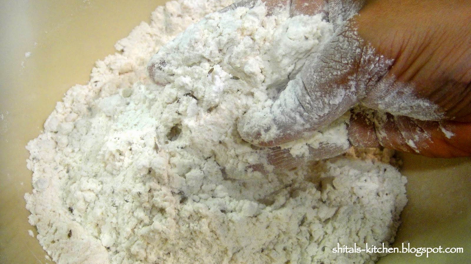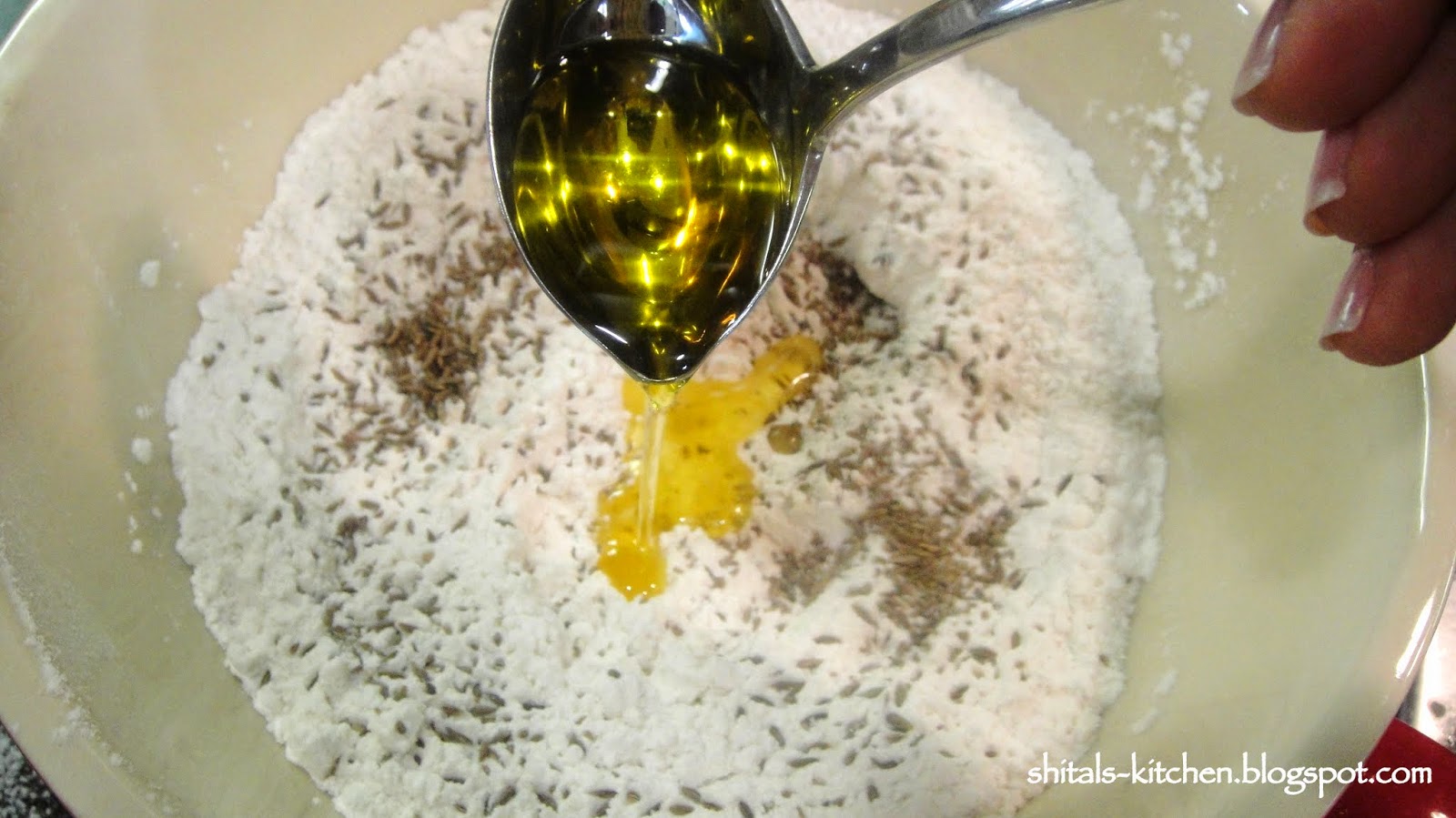 Add 1 tsp. ajwain/carrom seeds and 1 tsp. jeera/cumin seeds (both are optional)