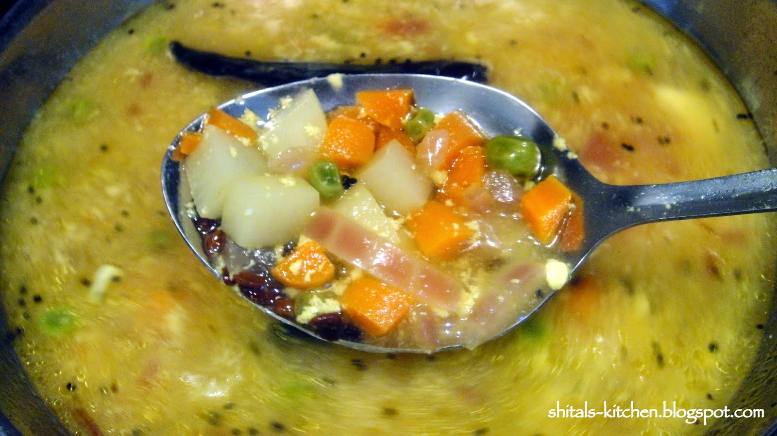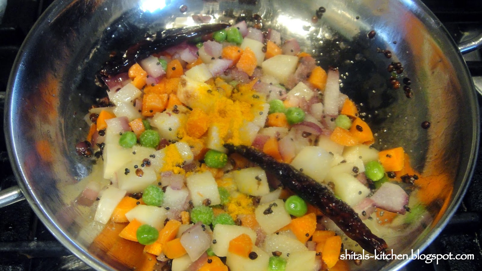 Add 1/2 small chopped onion, 1 small potato chopped, few peas, and chopped carrots.