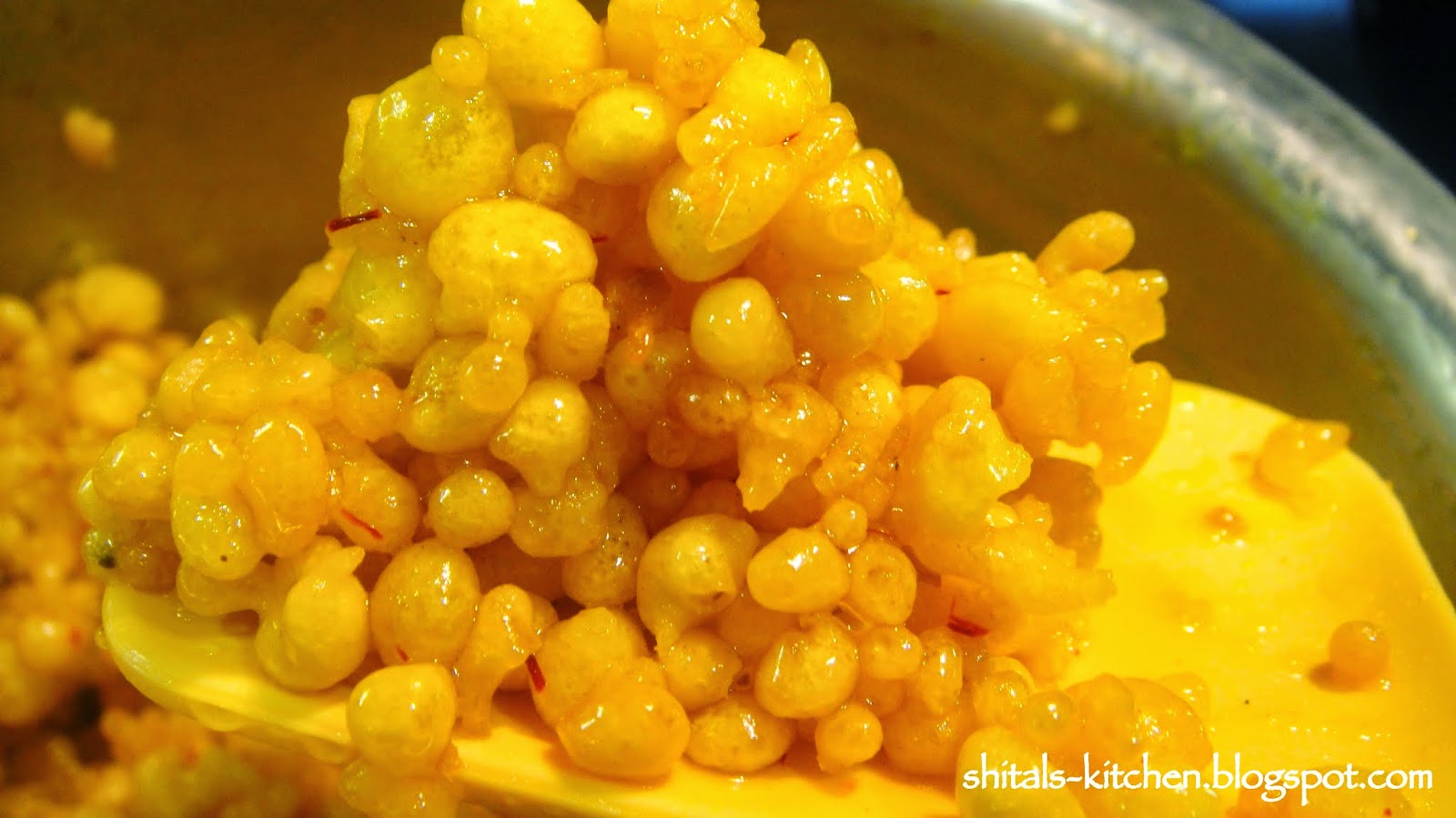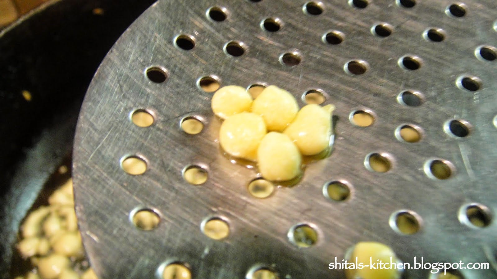 to warm sugar syrup. Repeat till the batter is used. The boondis will