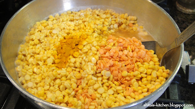 2+1/2 cup mixed dal (yellow moong dal, chana dal, and masoor dal)