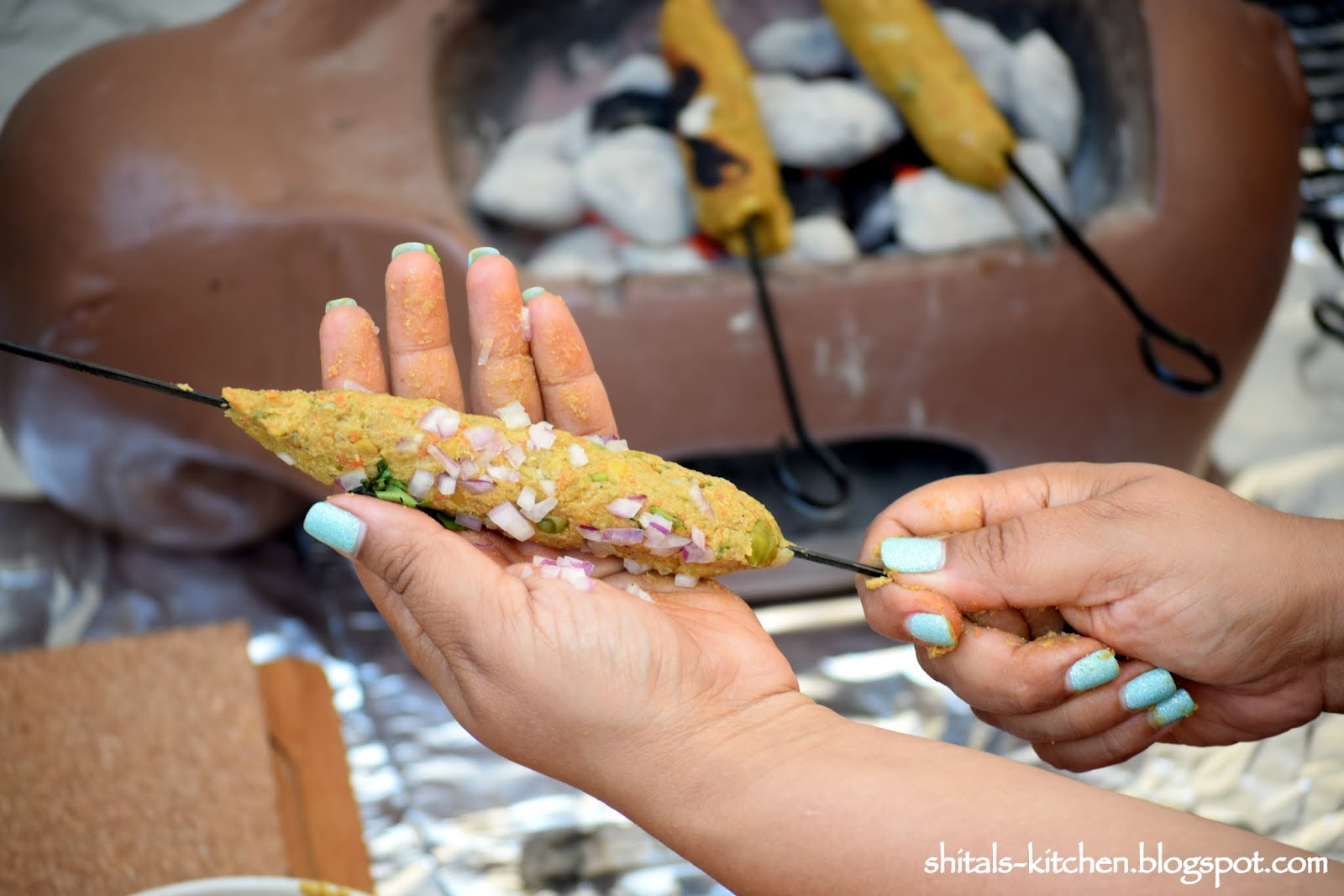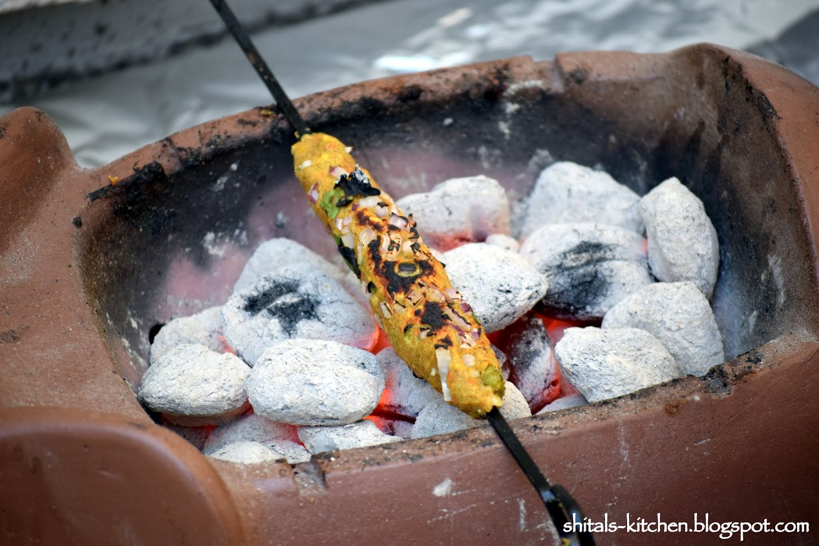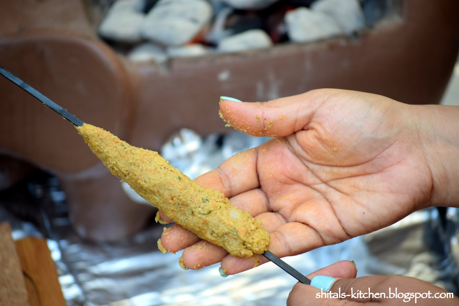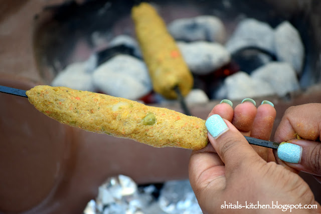 Seekh are metal skewers used in kabab making. Seekh kabab gets it's name from the fact than minced meat is wrap around metal skewers and then grilled to perfection. Charcoal cooks the food quicker and evenly. Inspired by non-vegetarian seekh kababs, I tried my hands on vegetarian version by using nutritious dals/lentils and veggies.