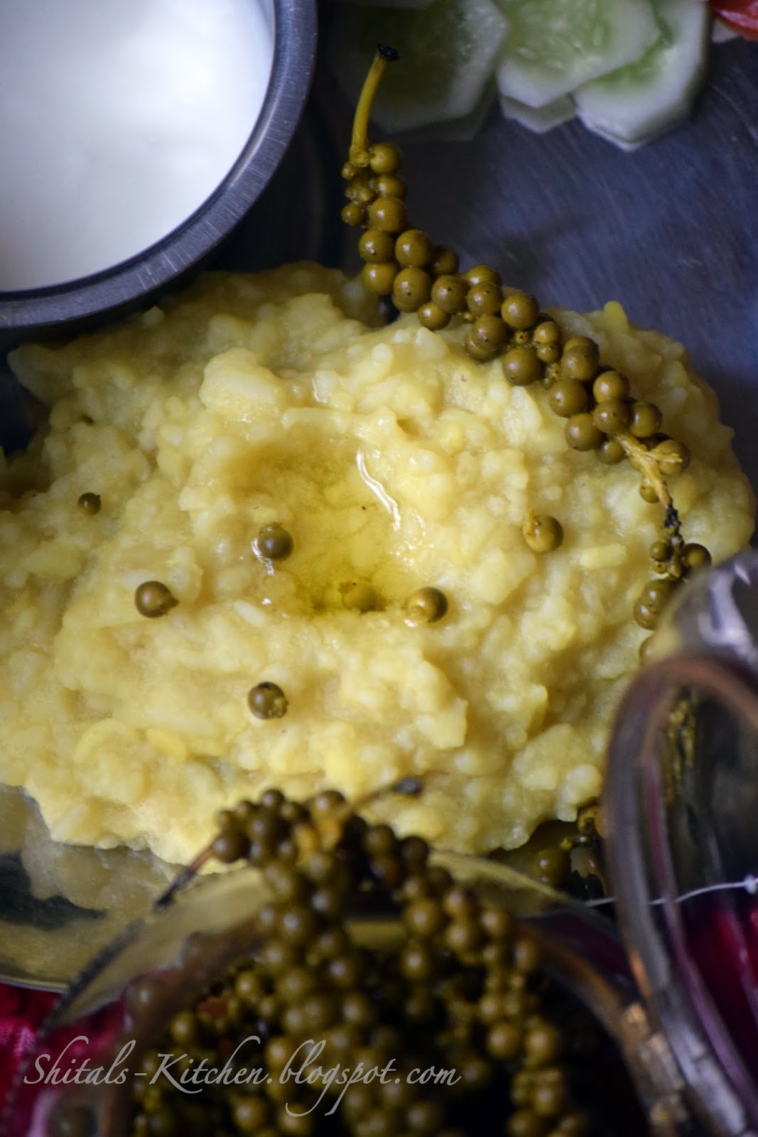 Fresh green peppercorns are tender and slightly spiced. The pickle tastes sour with a slight kick as you bite into a corn, and is perfect with simple Indian rice dishes or kichdi, which is a mushy preparation of rice and lentil.