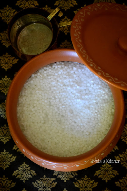 Soak 2 cups of sabudana in 2 cups of water overnight or 4-5 hours till they are fluffy.