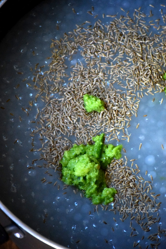 While still slightly warm, add cumin seeds and ginger and green chili paste.
