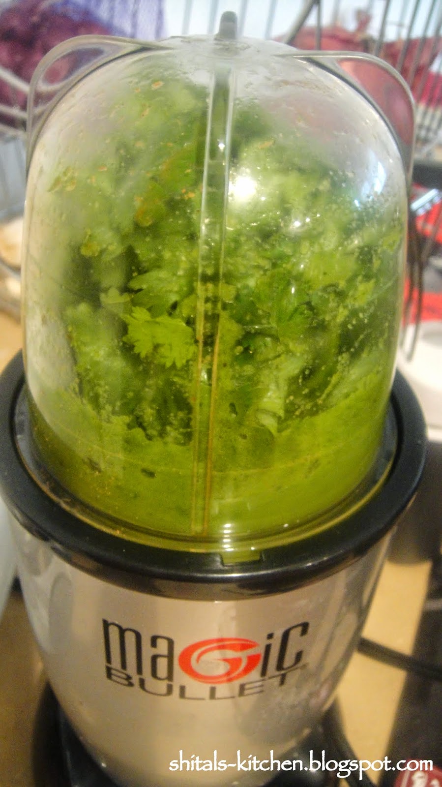 1/2 cup cilantro, 4-5 mint leaves, 1 tbsp. peanuts, 1/2 tsp. cumin seeds, 2 green chillies, 1/2 tsp. salt lime juice.