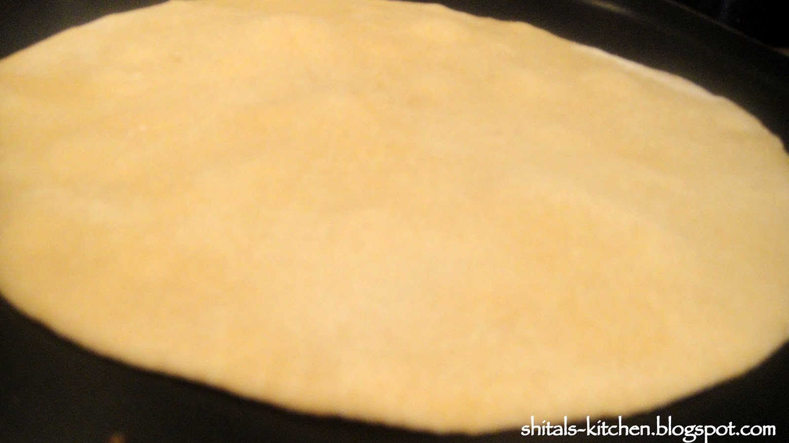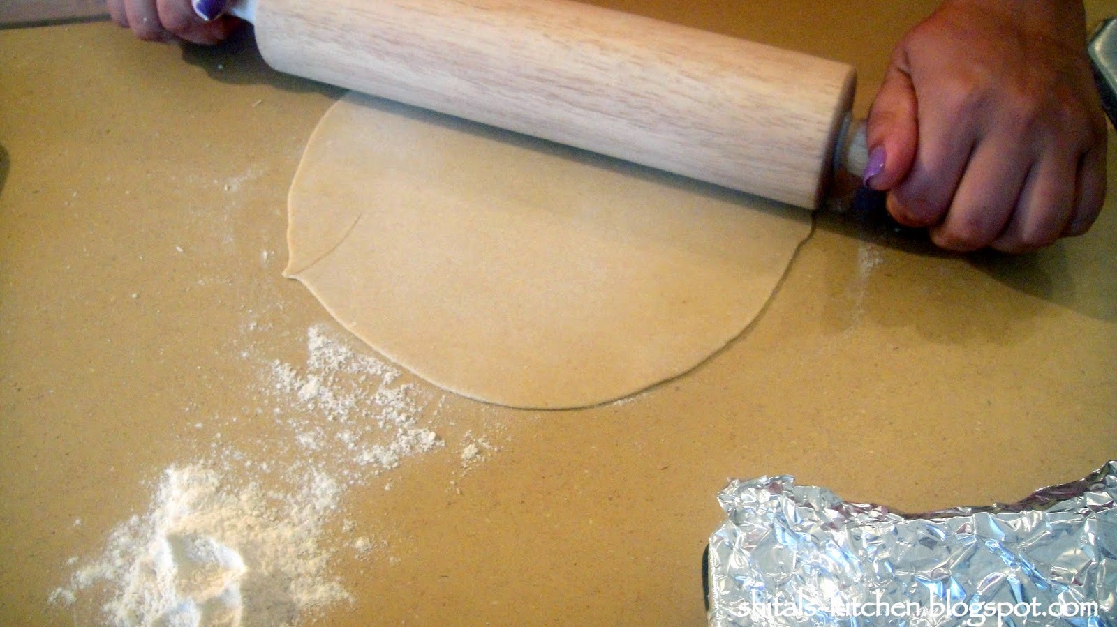 Roll the dough in dry flour and roll to form a 10-12 inch circle.