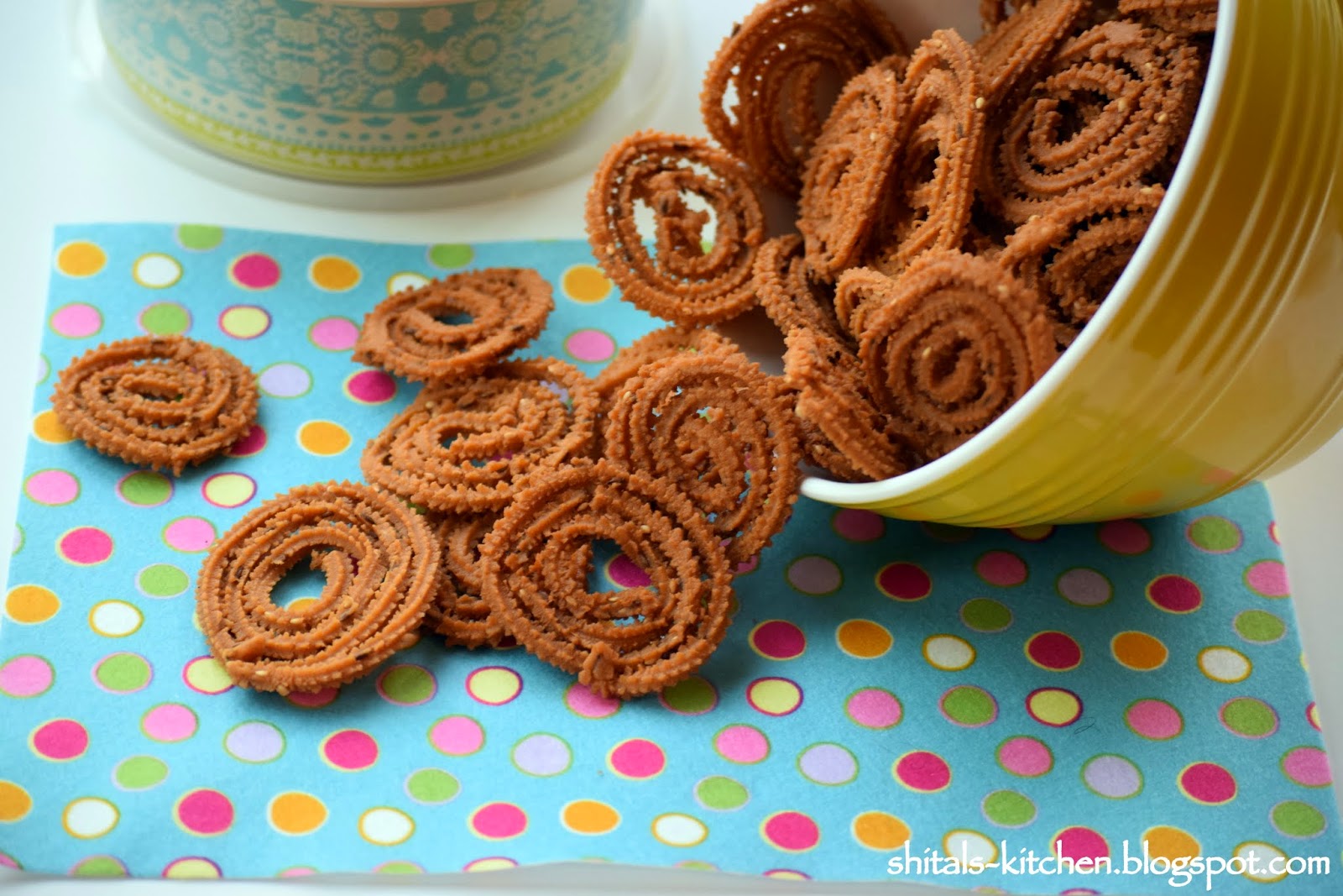 This is the quickest consumed snack by my family!! When my mom made these, a big batch of chaklis would not last for more than two days. Yes, we all love it a lot. :) The word Chakli comes from the Gujarati word Chakri or Chakedi which means pinwheel or tops. These pinwheels are perfect for mid afternoon snacking with a cup of hot tea or coffee. Yes, I do make baked version for me to make them guilt free, but I love them fried too :) Crisp and Crunch is the key to perfect Chakli!!