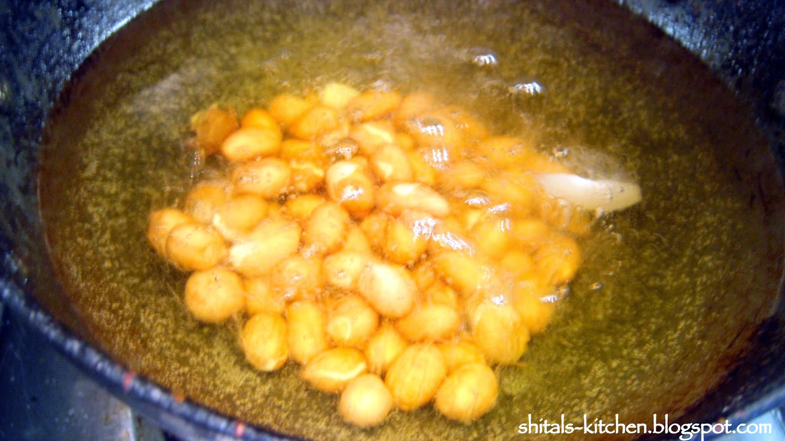 To test oil temperature, simple add a piece of dough into hot oil. If it starts to fry but not turning dark; it is perfect.
